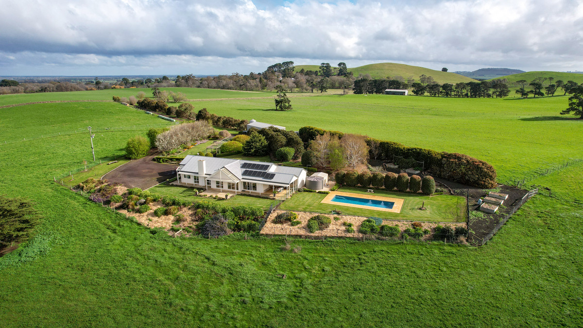 "Kanangra" is pleasantly introduced by its established tree-lined driveway opening to the superbly sited Architecturally designed Residence set within mature lawns and gardens, creating an atmosphere of tranquillity. The thoughtfully planned Residence comprises both formal and informal zones, taking in the peerless panorama through double-glazed windows toward Mt.Elephant and Lake Corangamite, with four generously proportioned bedrooms (main ensuite and walk-in robe) and the soaring roofline merging at a single point delivering an atmosphere of space and warmth which is an absolute feature of the home.